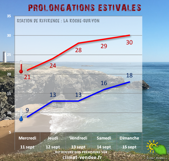 ☀️ PROLONGATIONS ESTIVALES ☀️ Nous n’avons pas encore totalement dit adieu aux fortes chaleurs. Si l’automne avance à grand pas, le mois de septembre peut encore nous réserver quelques belles périodes estivales. 😎 Actuellement, l’anticyclone FRIEDERIK évolue entre les Açores et la Bretagne. Celui-ci…
